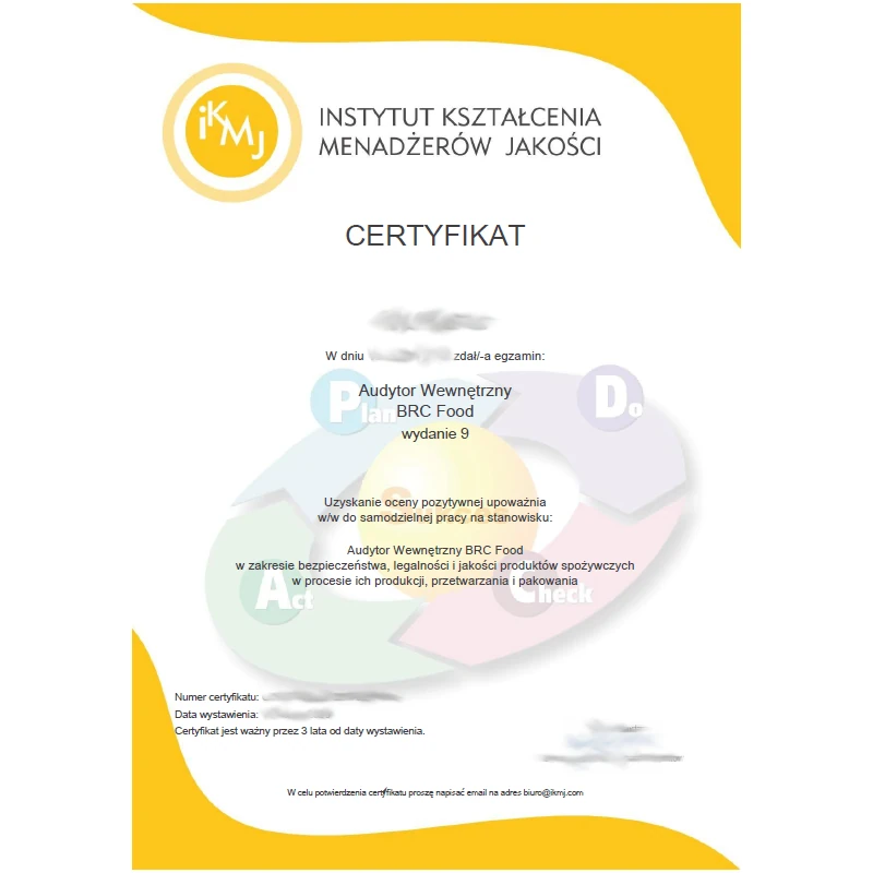 Zdaj egzamin i wydrukuj Certyfikat Audytora Wewnętrznego BRC FOOD!