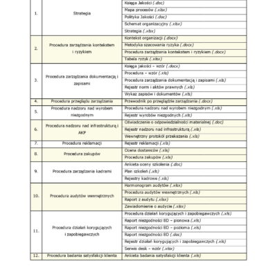 Dokumentacja ISO 9001 – Spis dokumentów: