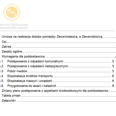 Dzięki naszemu produktowi z wymaganiami ISO 14001 dla dostawców łatwiej będzie Ci wymusić na dostawcy spełnienia wymagań ISO 14001, które mają stosować jako dostawca organizacji posiadającej ISO 14001.