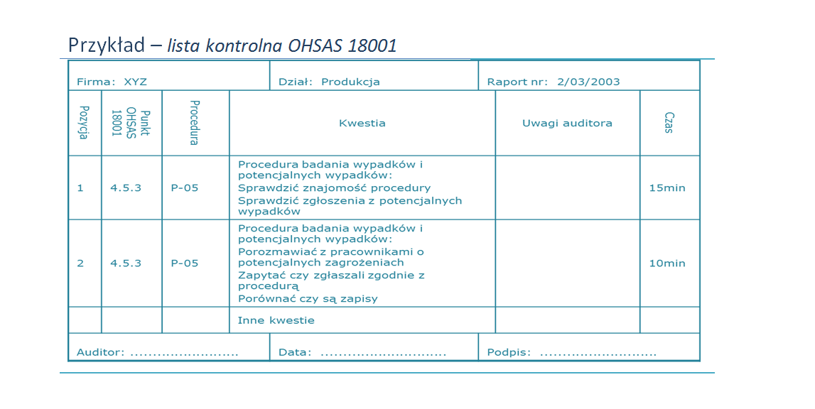 Dokumenty te nie są wymagane, ale systematyzują działania auditowe i mogą być pomoce szczególnie dla początkującego auditora.